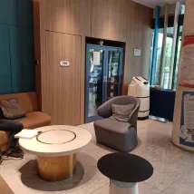 The room is very spacious with a direct view of the river, offering a great panorama. It also has a small sofa, and the layout is very well-designed. The service staff were very gentle and provided attentive service. There's a robot in the lobby for delivering food and goods, which is very convenient. The environment is quiet, making it highly recommended for a family trip.