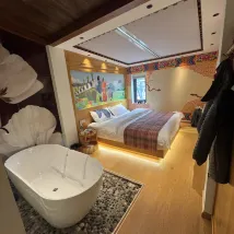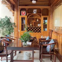The room decor is truly unique, featuring a charming all-wood theme that creates a wonderful ambiance. The hostess was incredibly kind, warm, and hospitable, providing excellent service. The location is perfect, right next to Dukezong Ancient Town, just a 2-minute walk away. It's extremely convenient for exploring and getting around.