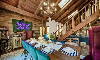 The main family/living room has an open design with vaulted ceilings, a gorgeous wood burning fireplace and a 75” LED Smart TV. We have Starlink WiFi and you can also access your own Netflix/Hulu/HBOMax accounts if you prefer or fall down the rabbit hole and disconnect while at Wonderland.