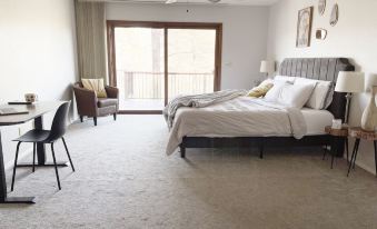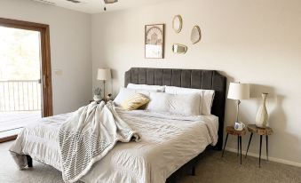 There are 3 bedrooms with 4 beds. We provide a king size bed in the ample master suite with standing desk and leather sofa, there is also a large walk-in closet and a full bath. You could open the sliding door to enjoy the deck from master room directly. The other two bedrooms have queen size bed, queen size bed plus full size bed each and share a full bath. All beds and beddings are brand new and well tested comfortable, we hope to provide you the best sleeping experience.