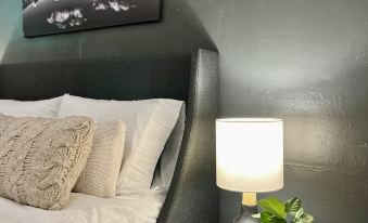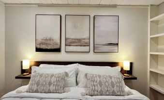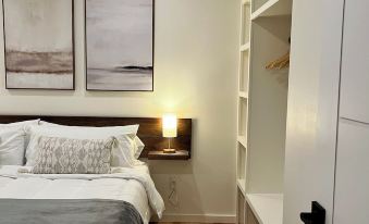 Bedroom #2: Drift off in a cozy queen-sized bed, also with a memory foam mattress and stacked pillows for ultimate comfort. The high 14-foot ceilings create a feeling of openness, perfect for a peaceful escape. This bedroom also features a private entrance for added convenience.