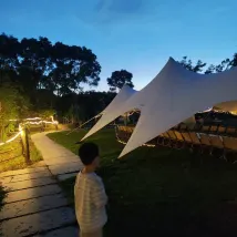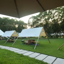 From the moment we arrived, the staff greeted us warmly and personally escorted us to our tent. They gave us a detailed tour, explaining the layout of the restrooms and activity areas, and even thoughtfully pointed out the best photo spots for a rainy day 📸. What truly impressed me was that they had already turned on the air conditioning in our tent. Stepping inside, it was instantly cool, and the humid stuffiness completely disappeared – an absolute lifesaver in the summer heat!