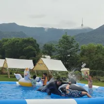 Beyond five stars! My kids had an absolute blast and didn't want to leave! This campground is simply fantastic! The weekend was packed with so many activities; we couldn't possibly fit them all in from morning till night! The kids immediately started 'digging for treasure' in the sandpit and couldn't stop, and the super lively fish in the fishing pond gave them a huge sense of accomplishment. Go-karts and swings were my children's absolute favorites; they played them countless times, screaming with delight! The craft activities helped them develop their motor skills, and they even got to take their creations home as keepsakes. The inflatable pool and water fight in the afternoon were an absolute summer carnival – the kids were soaking wet but beaming with joy! The evening bonfire party had an incredible atmosphere; the whole family danced to the music, and even the adults had a blast! Staff members were even on hand to take photos and upload them to a live album, capturing countless happy moments. To our surprise, on the second morning, we could even visit the vegetable garden and pick fresh produce for 10 yuan per jin – it was my child's first farming experience, and they were absolutely thrilled! After just two days and one night, my child immediately asked, 'Mommy, can we come back again tomorrow?' The facilities were clean and safe, and the staff were incredibly patient and helpful. This is absolutely a hidden gem for family travel, and I've already recommended it to all my friends! 100% recommended! 👏👏👏