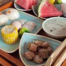 ★ The breakfast was a truly comforting start to the day! Beautifully presented, it included milk, taro pork ribs, corn, eggs, adorable piggy buns, preserved egg and lean pork congee, and fresh fruit – a rich and nutritious spread.