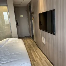 The hotel is very conveniently located, just a few minutes away from Guomao Station. The room was good overall. The only drawback is that you have to recharge your membership to cast the TV in the room. If you don’t cast the screen, you can only watch TV.