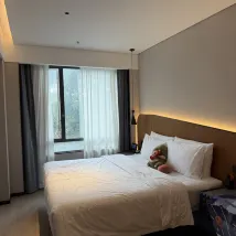 The room was fantastic! Breakfast was excellent, with incredibly long serving hours, from 7:30 AM all the way until 1:00 PM. The lobby also featured some distinctive design elements. The room amenities were truly smart, including a Xiaodu robot and a Peanut robot for food delivery. They even thoughtfully upgraded my room. Everything was simply superb! I will definitely be back again.