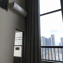 Because the living room is a double-height space, the air conditioning seems underpowered in the summer. The shower room has one undivided wet and dry area, and the other has no partition. The shower drains very slowly, causing water to pool. The door lock doesn't lock from the inside, raising concerns about safety. Otherwise, it's fine.