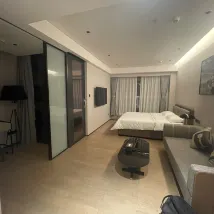My friend recommended this apartment in Shenzhen, and it was such great value! The front desk staff, especially the guy, provided amazing service! He was so responsive and even upgraded me for free to a 36th-floor sea-view room, which had an absolutely stunning view! The cleaning lady was also very meticulous, making the room clean and comfortable. The surrounding area is super lively with tons of street food. I'll definitely choose this place again next time I'm in Shenzhen!
