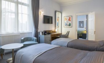 I stayed here Saturday night with a friend and another friend booked a room here too. We just used it as an overnight stay whilst visiting friends who live in the area. Both us and our friend were met with the same unfriendly and abrupt receptionist and shared similar experiences. We were told that check out was 9.30am, even on a Sunday. My friend was about to ask if it’s possible to check out later, but didn’t even get half way through the sentence before the receptionist rudely interrupted and said a very definite NO! Our rooms were in Kent building, our room was on the middle floor & was actually ok. It was smallish, bug reminded us of a travelodge. The bed was comfy and it had tea/coffee, tv and towels. The bedding did smell awful of dampness, like it hadn’t dried properly before being put away. But the room was very clean and the bathroom was modern. For the £56 it cost we thought it was fine, especially as it included breakfast. Our friend’s room on the bottom floor was damp, mouldy and he wasn’t impressed at all. Our room had a large window overlooking the gardens which were lovely. The walls were very thin and we could hear conversations in other rooms. We had to put ear plugs in due to the man in the next room snoring. It sounded like he was in our room. Breakfast finished at 10am, it was self service. Sausages, beans, eggs, potatoes, mushrooms, croissants, fruit, cereals, cheese, ham and bread. There were hot drinks and fruit juices. It was definitely okay for the price we paid. It was in the main old looking building. We enjoyed our stay, but probably wouldn’t stay again due to the very early check out time, the unfriendly receptionist and the thin walls making the rooms noisy.