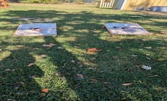 Outdoor kitchens, outdoor games, and paddle boats are available for guests to enjoy during their stay.
