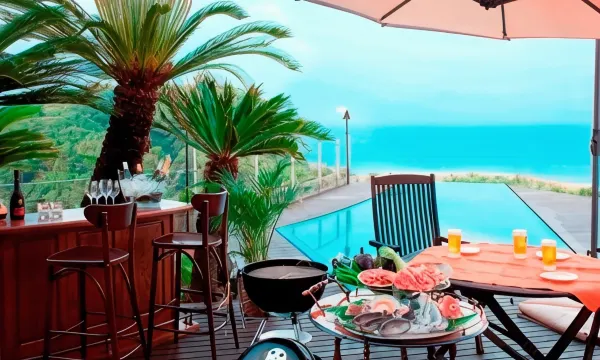 正月明けに家族で2泊しました。 お部屋もブルーを基調としたギリシャ気分を味わえる部屋でした。 ディナーは、ライトフレンチとBBQにしましたがどちらも美味しかったです。 子連れでも早めにディナーを始めていただけたので、普段子供がいて食べられなくなってしまったフレンチも周りを気にせず楽しめました。 夏に利用したら、プールもあるのでもっと良いかもしれません。