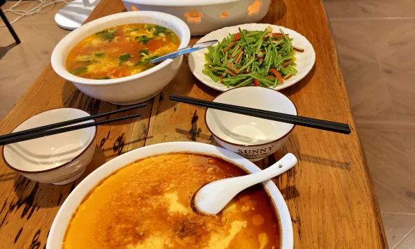 到牯牛降太方便了,離坐景交車入口衹要兩三分鐘,房間乾淨整潔,老闆做的菜很好吃,一品鍋裏的麪條很驚艷,早餐做的葱油餅也很好吃