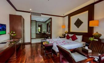 Very pleasant stay in at this hotel which is located in a quiet area of Siem Reap but still within walking distance to the Pub Street and restaurants. room was luxurious, larger than we expected and finished beautifully.