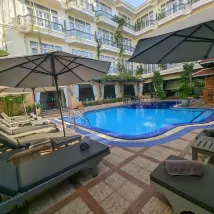 Clean room and friendly service.Location is great—2 km from Pub Street (Tuk Tuk is 1$) and just 1 minute to a supermarket. Big pool, but water was cold. Breakfast buffet was tasty. Price is reasonable. Recommended for families!