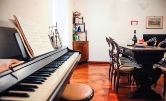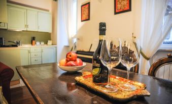 Our property was built in the 14th century and Buonsignori Apartment is on the second floor.. (Owners live on the third and fourth floors.) The small entrance way leads to the open-plan living/dining room. There is a modern kitchen with stove top cooking, oven, and all the necessary cutlery. The windows face the Via San Pietro and the Pinacoteca National museum from which you can watch the Palio parade in the comfort of your living room.