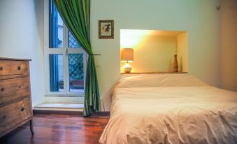 The master bedroom has a queen-size bed and an antique carved wooden closet. Large, modern bathroom is accessible from the bedroom. An outside courtyard is off this bedroom for relaxing in the quiet heart of Siena.