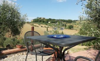 Residence bellissimo nelle colline senesi e fuori dal caos di Siena. È circa 6 km ma la strada è comoda e in 10 minuti di auto ti trovi nel centro di Siena. Sono in carrozzina e il residence è senza barriere architettoniche, la signora Paola gentilissima mi ha assegnato un appartamentino con un bagno enorme con doccia a filo pavimento e con pareti non fisse per poter muoversi meglio. Nell appartamento non mancava nulla c'era persino il caffè le bustine di te e di zucchero con qualche biscottino. Inoltre fuori c'era tavolo e anche 2 sdraio per rilassarsi.. vista magnifica rilassante e silenziosa. Parcheggio. A circa 200 metri 10 minuti a piedi c'è una pasticceria panetteria gastronomia che ha di tutto e di piu, sempre aperta dove puoi mangiare la oppure prendere il cibo e portarlo via. consiglio il residence a chi vuole tranquillità e relax fuori dal caos cittadino.