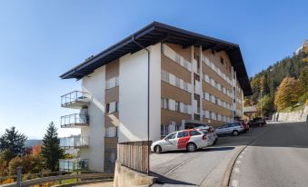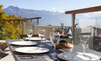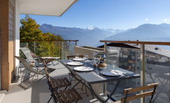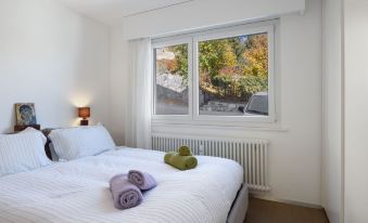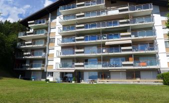 Apartment house "Clair-Azur A / B". Below Montana, in the district of la Combaz, 1.3 km from the centre of Montana, in a sunny position, 2 km from the lake, 1 km from the skiing area, south facing position. In the house: lift, storage room for skis, central heating system, washing machine, tumble dryer (for shared use, extra). Parking (limited number of spaces) at the house. Shop 1.2 km, supermarket 1.3 km, restaurant 1.2 km, bakery 500 m, bus stop "Comba" 200 m, railway station "Funiculaire Montana Gare" 850 m, bathing lake "Moubra" 2.2 km, lake Grenon 2 km. Golf course (18 hole) 3.3 km, skisport facilities 1 km, ice rink 1.6 km. Well-known lakes can easily be reached: Lac de la Moubra 2.2 km. Please note: ski bus (free of charge). Additional accommodations can be booked. The building is on a sloping site. The floors are considered as levels and are counted from the ground. "Clair-Azur A 41", 3-room apartment 77 m2 on 4th floor. Comfortable and beautiful furnishings: living/dining room with cable TV. Exit to the balcony, south facing position and east facing position. 1 room, north facing position with 1 french bed (170 cm, length 200 cm). 1 room, east facing position with 1 x 2 bunk beds (80 cm, length 200 cm) (90 cm, length 200 cm). Open kitchen (dishwasher, 4 induction hot plates, toaster, kettle, microwave, electric coffee machine, Capsules for coffee machine (Nespresso) extra, raclette grill, fondue Set (chinoise)). Shower/WC. Large balcony 19 m2. Balcony furniture, deck chairs (1). Very beautiful view of the mountains. Facilities: iron, hair dryer. Internet (WiFi, free). Please note: apartment carpark side. Non-smokers only. Accommodation on level with and adjacent to north car park and road: for bedroom and shower room only. Small auxiliary oven.
