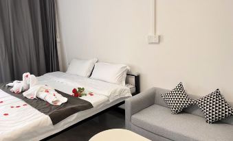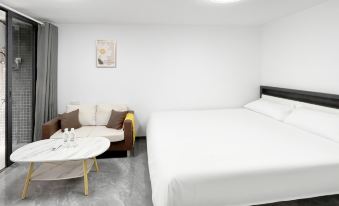 便宜實惠房間整潔乾淨有個小洗衣機可以洗衣服有個小陽台是上下複式公寓的下層有停車場可免費停車加酒店管家微信辦理入住服務態度很好稍微有所欠缺的是沒有電視機WiFi要辦日租套餐(1元一天)才能用床墊比較硬特惠大床房是靠近鐵路和高速公路一側的房間可能聲音會有點兒大對聲音敏感的還是選擇舒適大床房