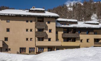 Silvaplana 6 km from St. Moritz: Apartment block "Chesa Munteratsch". On the outskirts, 300 m from the centre, 300 m from the lake. In the house: reception, lounge with TV, sauna (extra). Telephone box, lift, central heating system. Roofed, parking (limited number of spaces, extra). Grocery 400 m, restaurant 200 m, bus stop "Munteratsch" 50 m, railway station "St. Moritz" 5 km. Surf school 500 m, riding stable 4.5 km, sports centre 700 m, walking paths from the house 300 m, cable car 1.5 km, slopes 900 m, ski bus stop 50 m, cross country ski track 400 m, ice rink 700 m. Please note: ski bus (free of charge). Free ski bus service to the ski region Corvatsch. "Chesa Munteratsch 311", 1-room apartment 27 m2, north facing position. Renovated in 2015, beautiful and modern furnishings: living/dining room with 1 double fold-away bed (1 x 160 cm, length 200 cm), TV and radio. Open kitchen (2 hot plates, oven, dishwasher, toaster, kettle, electric coffee machine, Capsules for coffee machine (Nespresso) extra) with dining table. Shower/WC. Heating. Partial view of the countryside. Facilities: hair dryer. Internet (WiFi, free). Please note: non-smokers only.