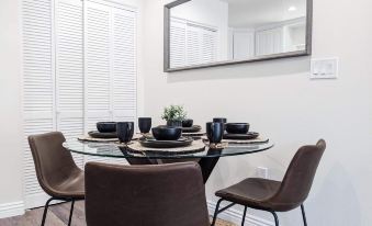 Really clean, cute house. Very well lit at night time. Quiet neighborhood. Very modern decor