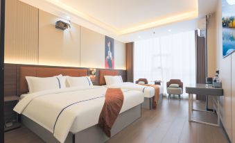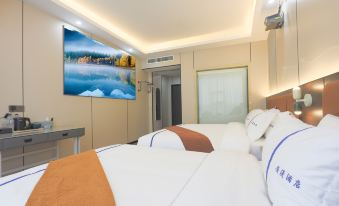 衞生很乾凈,房間佈置也很温馨。設施也很齊全。前台服務也好,辦理入住效率很高。還有機器人服務。門口就可以停車。而且還是免費的。性價比非常高。吃飯也方便,旁邊就是。走的急,房間忘記拍照了。