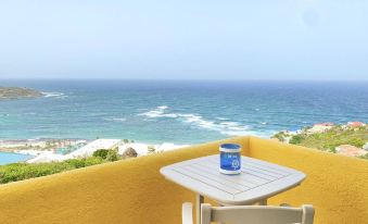Luna Sul Mare Condo is a lovely place to unwind and relax, The main room is an open plan space which includes a full kitchen, living room and a dining area. The space opens up to a full length balcony with panoramic views of Dawn Beach, Oyster Pond, Tintamarre and St Barths!
