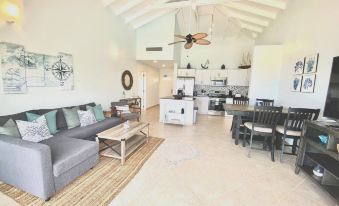 The living room has a 70" flat screen TV with full cable package including ESPN, HBO etc.. & Netflix access, comfortable L shaped sofa and a seating area for reading, relaxing or planning your next island adventure!