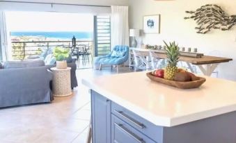 The Coastal Condo is 1,600 sq ft (150 sqm) of comfort. The main room is a large open plan space which includes a kitchen, living room and a dining area. The space opens up to a wrap around balcony with panoramic views of Dawn Beach, Oyster Pond and Tintamarre.