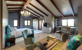 4 bedrooms: 3 single beds 1 sofa bed 1 queen bed 1 king bed and 1 double bed