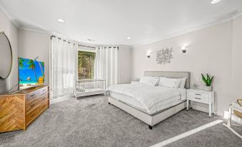Our family and friends (18 of us) made the best of a very disappointing situation. The list of problems is too long to detail here, but appliances didn’t work and were filthy, as were many of the dishes. The trampoline had a huge hole in the middle. The cupboards and storage spaces were so full of the owners’ things that there was nowhere to put our things except on the kitchen counter (which took away our prep space) and on the floor of the bedrooms, since most of the bedrooms had no closets. The kids room worked well for our kids, and we appreciated having the laundry. Whatever the thing was attached to the kitchen sink just sprayed water all over the countertop, including the outlets, and finally started running all over the kitchen floor. When we called the property manager about it, we were just told to put a pot under the sink, no attempt to come to fix it, no explanation of what this thing was or how to use it. Only one of the 3 grills worked, the showers backed up regularly, the deck in the primary bedroom was worthless because the blinds fell on the ground every time we tried to open deck door. A chair to sit out there might have been a good idea, too. The pool table in the garage and the air hockey machine didn’t work. I felt like we spent more time trying to fix things that were broken than relaxing. The yard was so overgrown when we arrived that we couldn’t play outside without bugs and thorns scraping us. They did come and mow it after a few days, which helped.