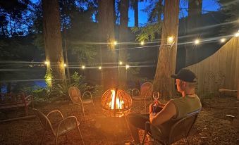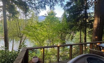 Cozy Tiny Cabin with RIVER VIEWS! Sleeps 3, hot tub, wood stove, fire pit!
