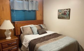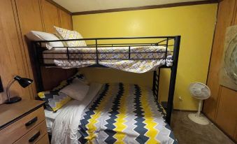 3 bedrooms: 1 bunk bed 1 single bed and 2 queen beds