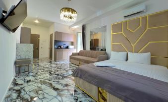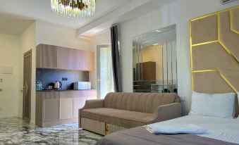 Guests can book rooms of the following categories: Standard, Superior Standard, Comfort and Suite. All of them are equipped with a wardrobe, air conditioning, TV, Wi-Fi, dining table, refrigerator, kettle, microwave and bathroom. The suites are equipped with a kitchen. Towels, slippers and cosmetics are provided.