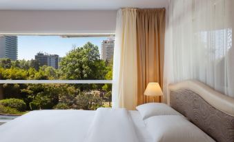 Rooms of various categories are available for booking: Standard, Standard Comfort, Deluxe Panorama, Duplex, Junior Suite, Family Suite, GRAND Apartments. The hotel rooms are equipped with everything necessary for a comfortable stay and are decorated in Chinese style. The rooms offer views of the city or the green Japanese garden.