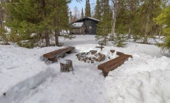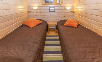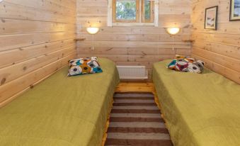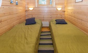 The front and back terraces are perfect spots for enjoying your morning coffee or relaxing in the evening, and there is also a proper campfire site in the yard. If desired, you can rent an additional smaller cabin on the property for an extra fee, accommodating 2–3 persons (2 separate 80 cm beds + sofa bed for one). This smaller cabin does not have running water or a WC. The smaller cabin can be booked through the "Other Expenses" additional service.