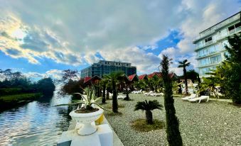 The Grand Hotel Sukhum Resorts is a 6-storey building with a panoramic rooftop restaurant. The hotel is located in the historical center of Sukhum, at the beginning of the Makhajirov embankment, within walking distance from the main attractions and cultural institutions: the Abkhazian State Drama Theater, the State Russian Drama Theater, the Griffins Fountain, the colonnades and Brekhalovka. The distance to the nearest beach is 180 meters.
