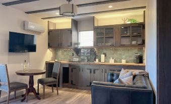 The kitchenette is equipped with all the essentials you need to prepare light meals and snacks. It includes a mini-fridge, microwave, coffee maker, and a selection of utensils. Enjoy your culinary creations at the dining table, which provides a charming setting for intimate meals.