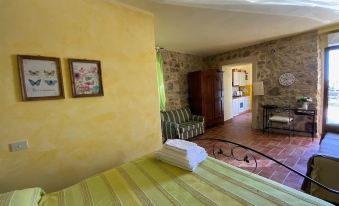 The cottage, which has some characteristic stone walls, is tastefully furnished, according to the Tuscan style.