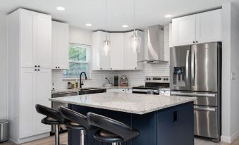 3 bedrooms: 1 bunk bed and 2 queen beds