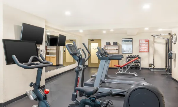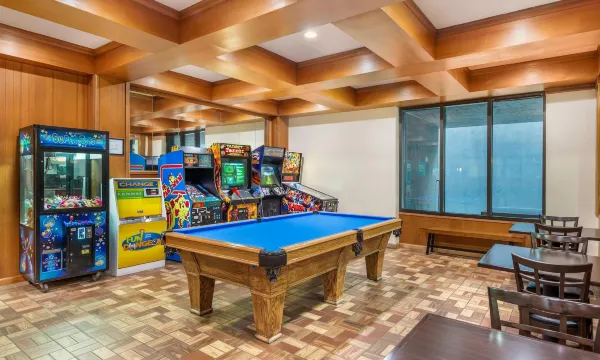 Enjoy our Fireside Coffee Bar and Marketplace for assorted snacks. We offer a heated pool, hot tub, fitness center, and seasonal rooftop tennis court.