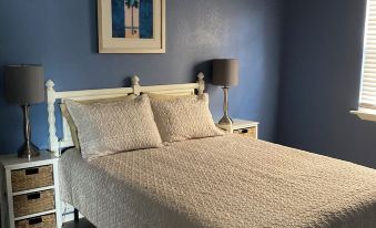 3 bedrooms: 2 single beds 1 queen bed and 1 king bed