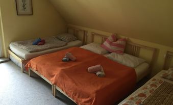 3 bedrooms: 5 single beds 1 queen bed and 1 double bed