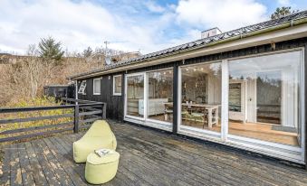 Single-family house, built in 1967. Private: natural state property 1'200 m2. Grocery 4 km. The owner does not accept any youth groups. "Heera" - 100m to the fjord", 3-room house 58 m2. Object suitable for 4 adults + 2 children. Living room with TV. 1 room with 1 double bed. 1 room with 1 double bed. 1 room with 1 x 2 bunk beds. Kitchen (oven, dishwasher, 4 ceramic glass hob hotplates, microwave, freezer). Shower/WC. Of the bay. Facilities: Internet (WiFi). Please note: non-smokers only. Maximum 2 pets/ dogs allowed. Bookings accepted for holiday purposes only. 779-139257