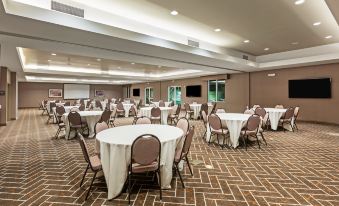 The hotel has over 3,000 sq. ft. of flexible meeting space for up to 240 guests. The large ballroom features doors that open to the welcoming outdoor pool and patio area. Natural beauty and shady trees provide pleasant scenery for memorable hilltop wedding receptions and special events.