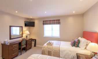 Attractive west facing twin bedded room with antique walnut beds, wardrobe, chest of drawers, bedside cabinet and wall mounted 32" tv.