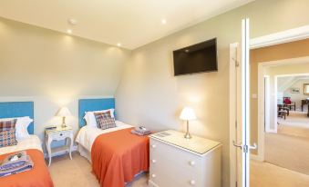 The Master Bedroom enjoys spectacular views over St Andrews Old Course. It has a beautiful en-suite shower room. This twin bedded room consists of a double wardrobe, bedside cabinets, dressing table, chairs, and occasional tables with ornate lamps, and wall mounted 32" tv.