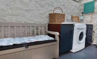 Utility Room with washing machine, area to hang wet suits etc. and back door to small storage area at rear. Price of property includes bedding, towels, tea and coffee for arrival and welcome gift pack for anyone booking one week or more.