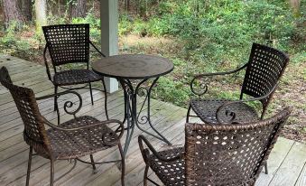 Cozy Cottage with separate guest house in the country near Abita Brewery, wineries, Lake Ponchartrain, and a short drive to New Orleans. This historic barge board cottage on private property has a covered gazebo, wraparound screened-in porch, outdoor deck and walking paths through the woods to see foliage, squirrels, and birds. Great place to experience the beauty of the wooded landscape and get away from it all. Ample parking. Nice set up for guests who need two separate areas. Kitchen is fully stocked with all you need to prepare a gourmet dinner or something simple to enjoy on the deck or screen porch. There are four bedrooms: two in the main house and two in the guest house. The main house front bedroom contains a double bed to accommodate two guests and the back bedroom offers a queen bed for two guests. There are three twin beds in the guest house to accommodate three guests. Both buildings have a full bath.