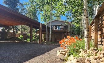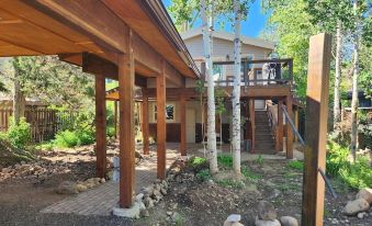 Located on an alley near a pet-friendly park, it features two maser bedrooms with full baths on the ground floor. Upstairs the living, kitchen and dining areas are in one big room. Windows on three sides make you feel in the outdoors. And you can be outdoors from either the 16X24 foot deck or circular patio below. A carport with covered walkway means you're never parking or walking in the snow or rain. Aspen trees shade you in the summer, while the gas stove warms you in the winter. And heated bath floors mean you feet never get cold! Oh yes, did I mention the beer tap in the kitchen? It's a great place to relax, ski in the winter or bike in the summer. And the off seasons are great for coming to enjoy fewer people. Hot spring are just downtown or a 15 minute drive to a more natural setting. There is so much to here all year round.
